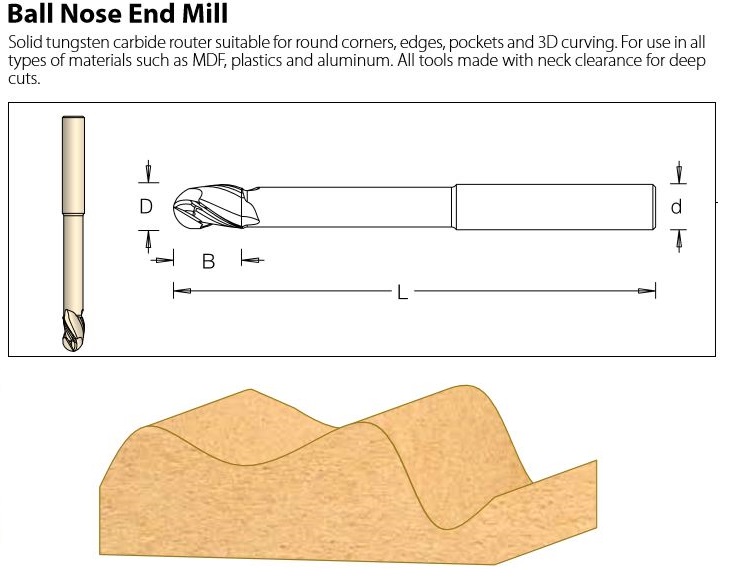SO1063775 – Ball Nose End Mill 08.0mm For 3D Curving or Carving
