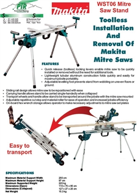 Quick release (toolless) locking levers enable mitre saw to be quickly installed or removed without the need for additional tools.Lightweight tubular aluminum construction folds quickly.Adjustable levelling foot