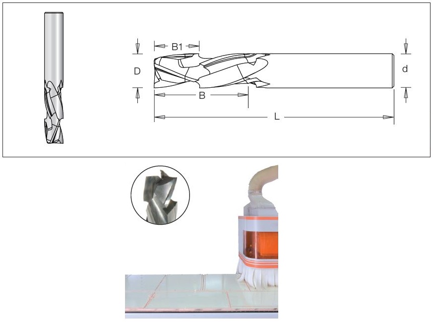1748405 New generation of spiral tools for nesting operation on a CNC machine. Power Tools “Dynamic” carbide for long lasting life.